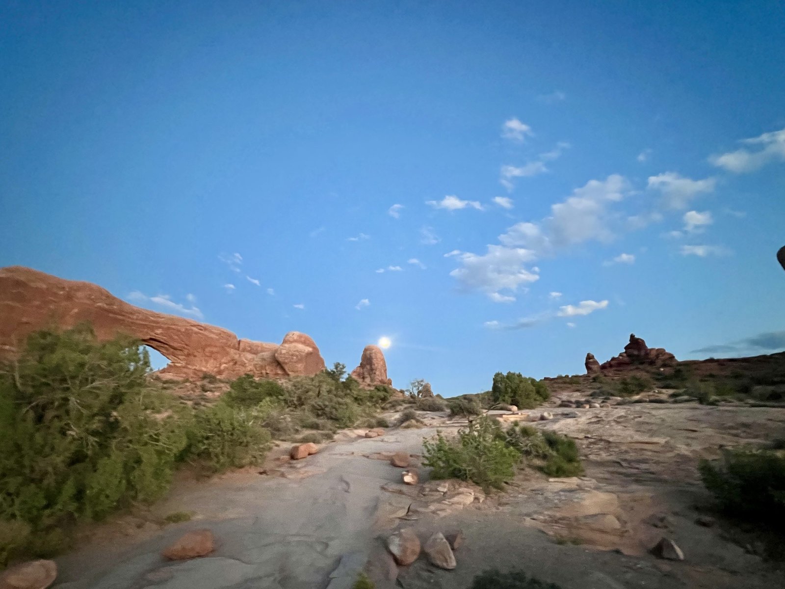 Fly to Moab and check into hotel. We will go to a mediterranean restaurant for lunch. Visit Arches National Park for a sunset viewing at the windows section. Light snacks and drinks will be provided at the park.
